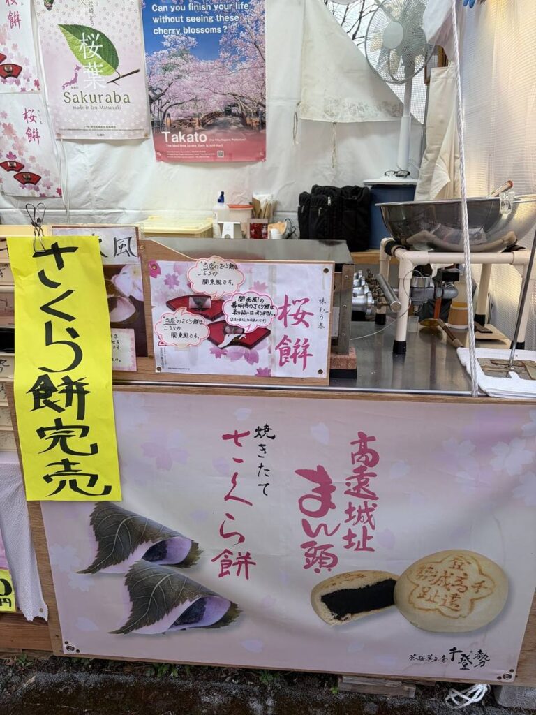 ところで、実は今回いちばん楽しみにしていたのが、会場内で売っているという焼きたてのさくら餅。地元の方が手作りしているという噂を聞いて、「絶対食べよう!」と意気込んでいたのですが……